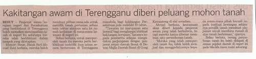 Kakitangan Awam di Terengganu diberi Peluang Mohon Tanah