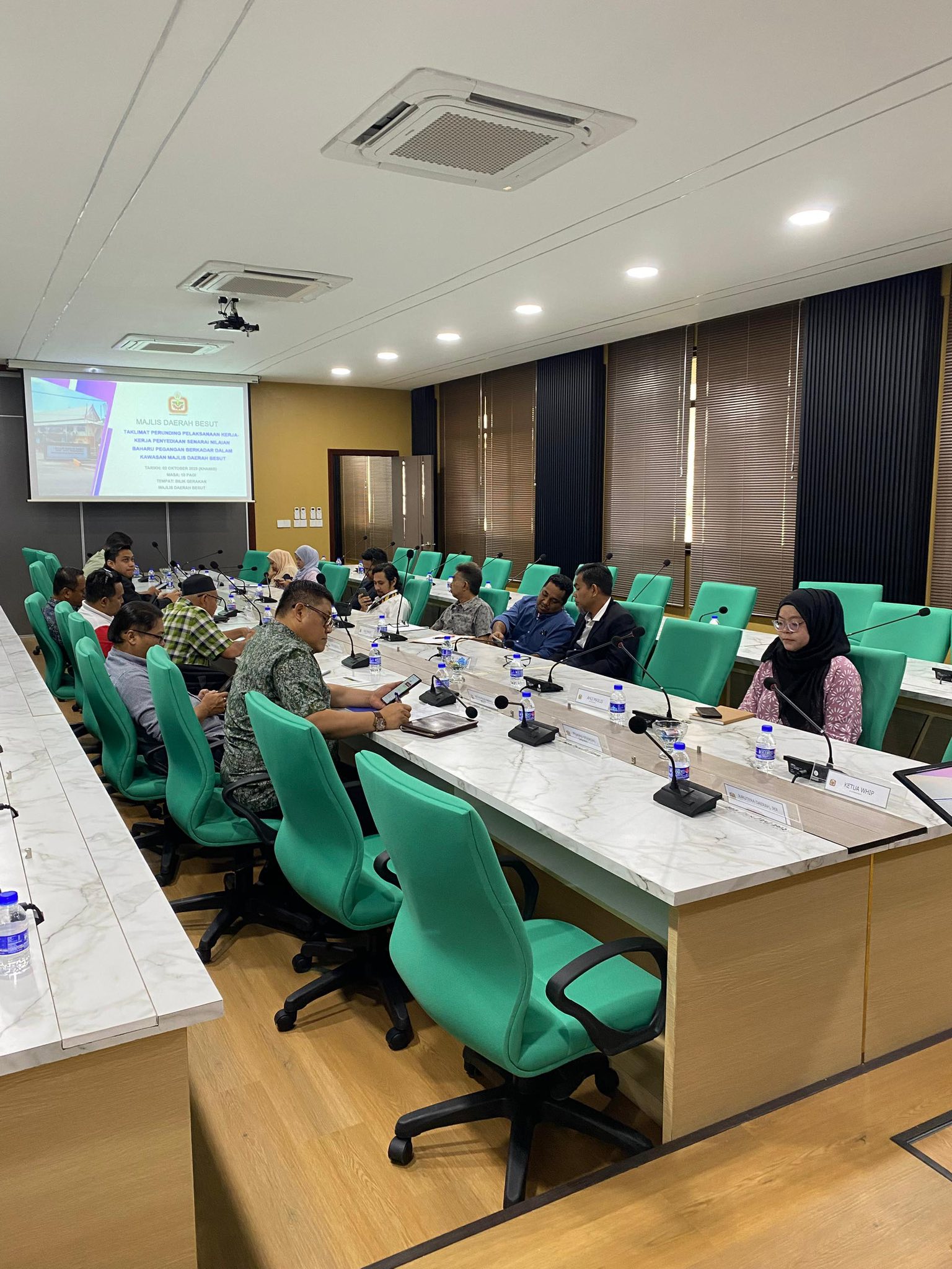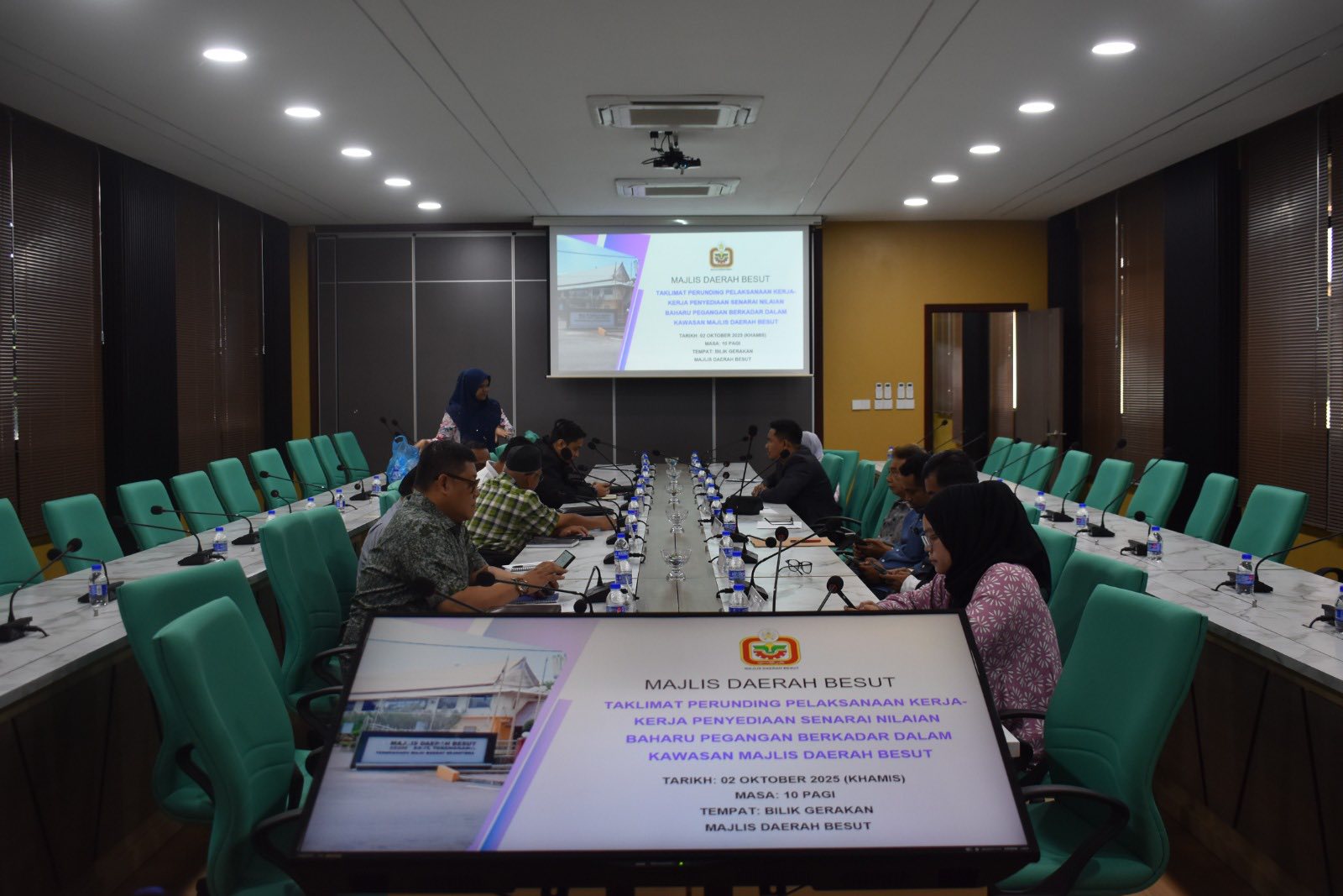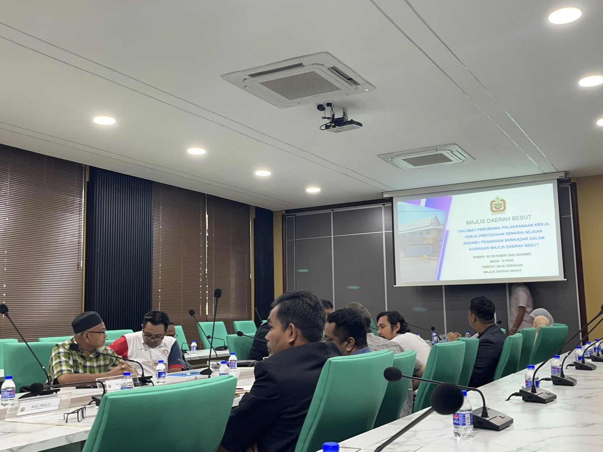 Bahagian Penilaian, Majlis Daerah Besut telah mengadakan satu Taklimat Perkhidmatan Perunding Pelaksanaan Kerja-Kerja Penyediaan Senarai Nilaian Baharu Pegangan Berkadar dalam kawasan Majlis Daerah Besut bagi tempoh dua (2) tahun.